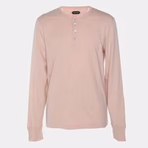 Tom Ford Pink Cotton Knit Long Sleeve Henley T-Shirt XL