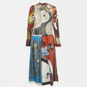 Versace Multicolor Ventagli Print Silk Shirt Dress 12 Yrs