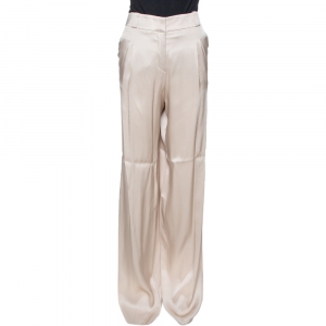 Chloe Beige Crepe Layered Ruffled Hem Long Sleeve Dress M