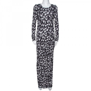 Yves Saint Laurent Paris Black Printed Satin Tie Detail Dress S