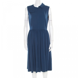 Blumarine Black Stretch Wool Crepe Embellished Belted Sheath Dress S