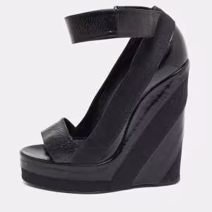 Lanvin Black Suede Slingback Wedge Sandals Size 40