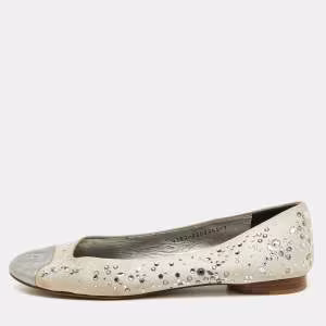 Versace Size 39 Black Leather and Mesh Embellished Ballet Flats