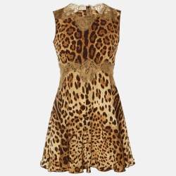 Dolce & Gabbana Brown Leopard Print Silk Lace Trim Mini Dress S