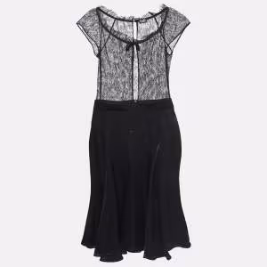 Moschino Monochrome Crepe Ruffled Trim Sleeveless Midi Dress M