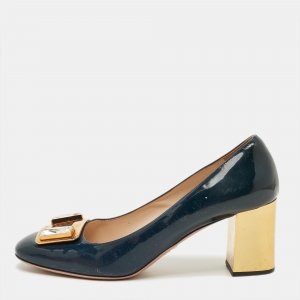 Roger Vivier Limelight Buckle Size 39.5 Navy Blue Satin Pumps