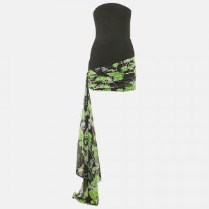 David Koma Black Rhinestone Studded Crepe Strapless Mini Dress L