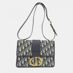 Christian Dior Dior Saddle Bag Mini Oblique Jacquard Handbag Canvas Leather Ivory Navy