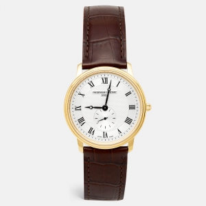 Frederique Constant Silver Gold Plated Stainless Steel Crococalf Leather Classic Slim Line FC200/220/235/245X4S25/6 Men's Wristwatch 37 mm