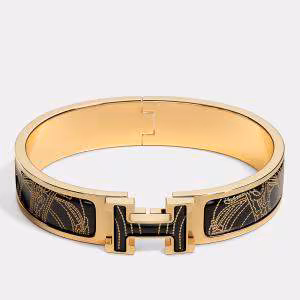 Hermès Collier De Chien Black Leather Gold Plated Bracelet S