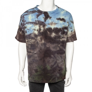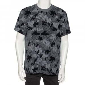 Louis Vuitton Navy Blue Leaf Discharge Printed Cotton Crewneck T-Shirt L