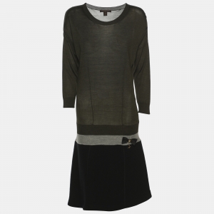 Louis Vuitton Black Textured & Leather Sequin Detail Asymmetric Hem Midi Dress M