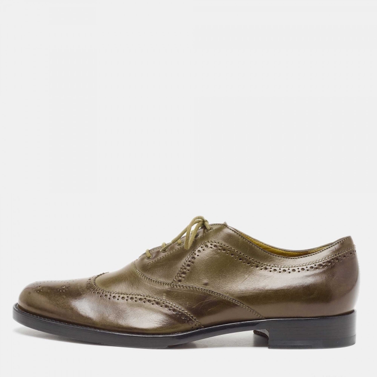 Alexander McQueen Olive Green Brogue Leather Lace Up Oxfords Size 41