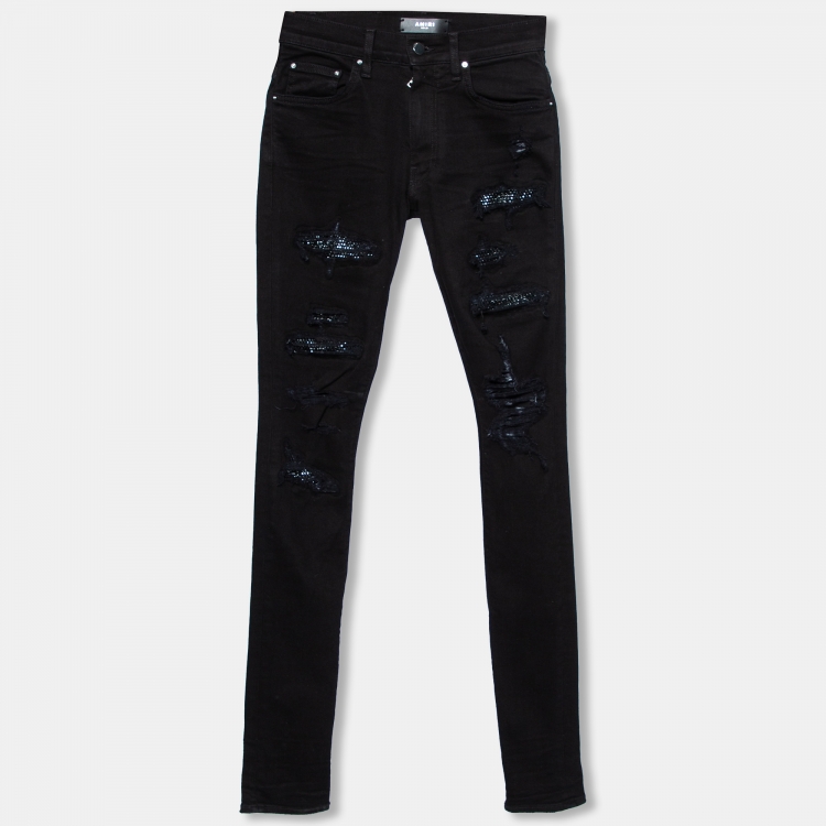 Amiri Black Distressed Denim Crystal Destroy Skinny Jeans XS