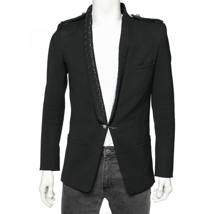 Fabric:93% Wool , 5% Polyamide , 2% Elastane ; Lining: 100% Cotton ; Sleeve lining: 100% Cupro ; Embroidery- 100% Cotton , Thread 2: 100% Metal , Chord: 100% Silk ,Beads: 100% Glass