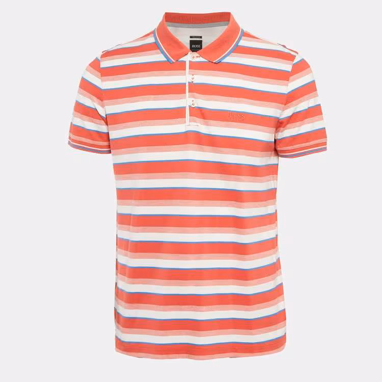 Pre Owned Boss By Hugo Boss Red Stripe Pima Cotton Regular Fit Polo L
