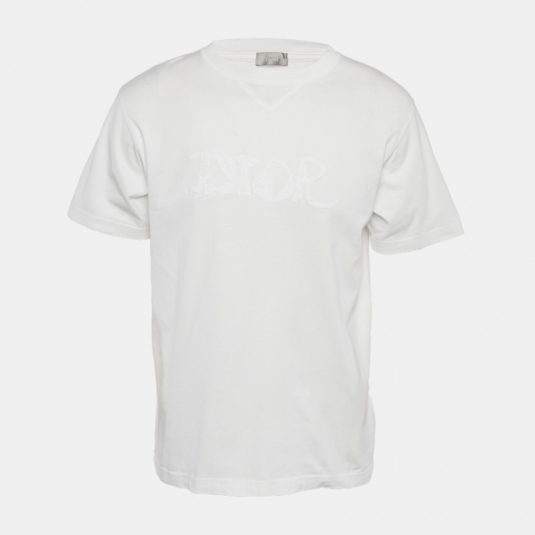 Pre Owned Dior Homme White Logo Embroidered Jersey Crewneck T-Shirt M