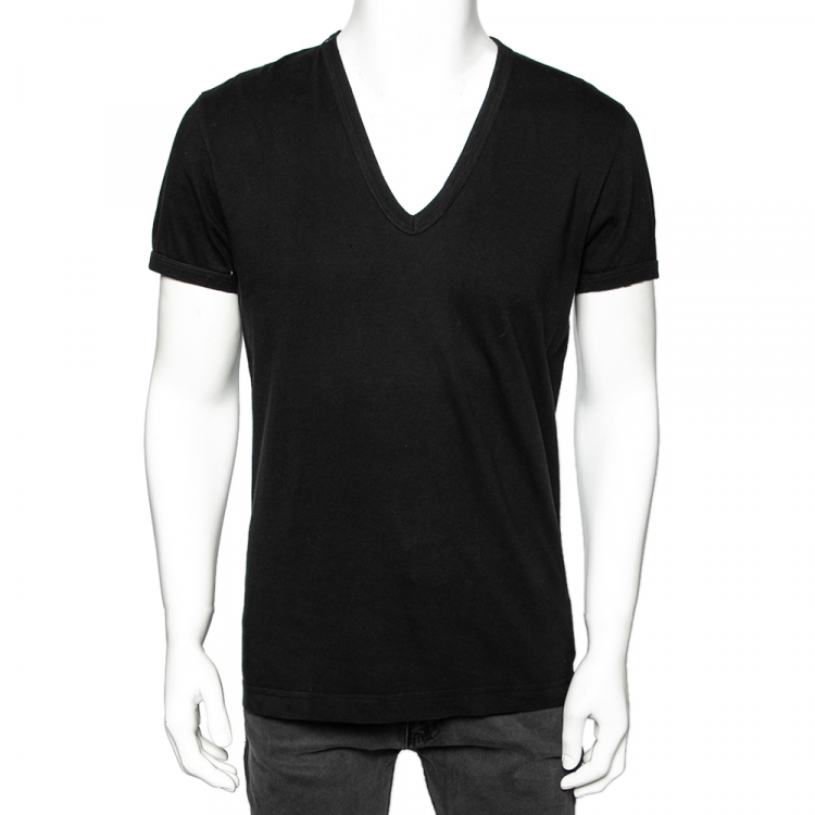 Dolce & Gabbana Black Cotton V-Neck T-Shirt L