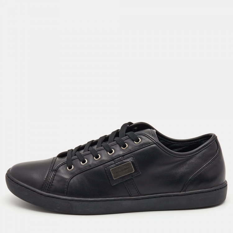 Pre Owned Dolce & Gabbana Black Leather Logo Plaque Low Top Sneakers Size 44