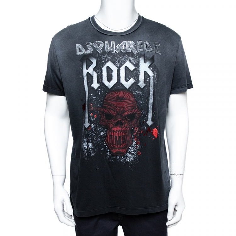Pre Owned Dsquared2 Grey Rock Skull Print Cotton T-shirt L