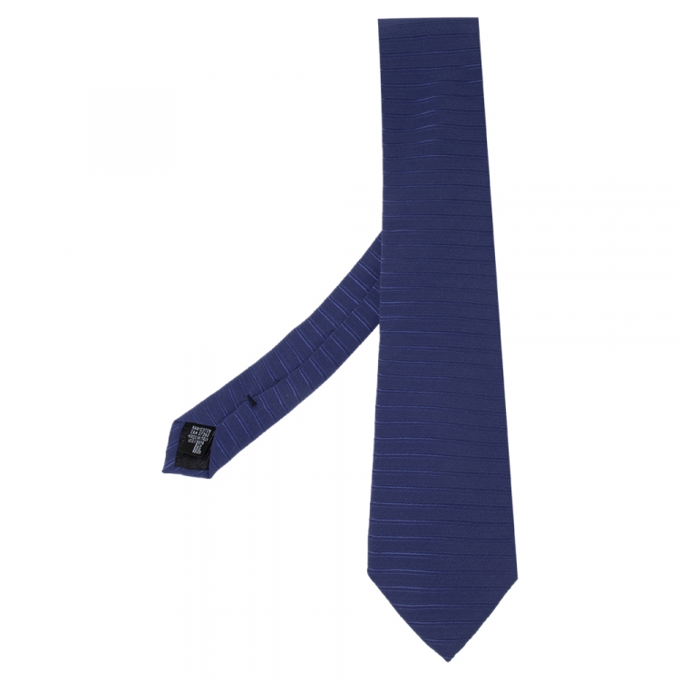 Pre Owned Giorgio Armani Blue Horizontal Striped Silk Tie