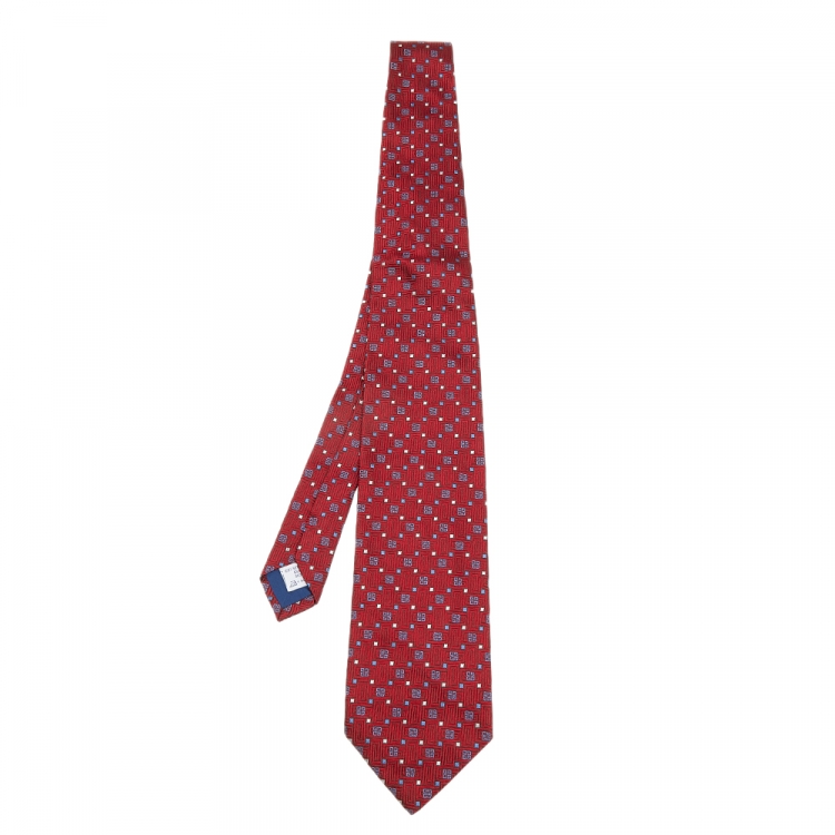 Pre Owned Givenchy Red GG Patterned Jacquard Silk Tie