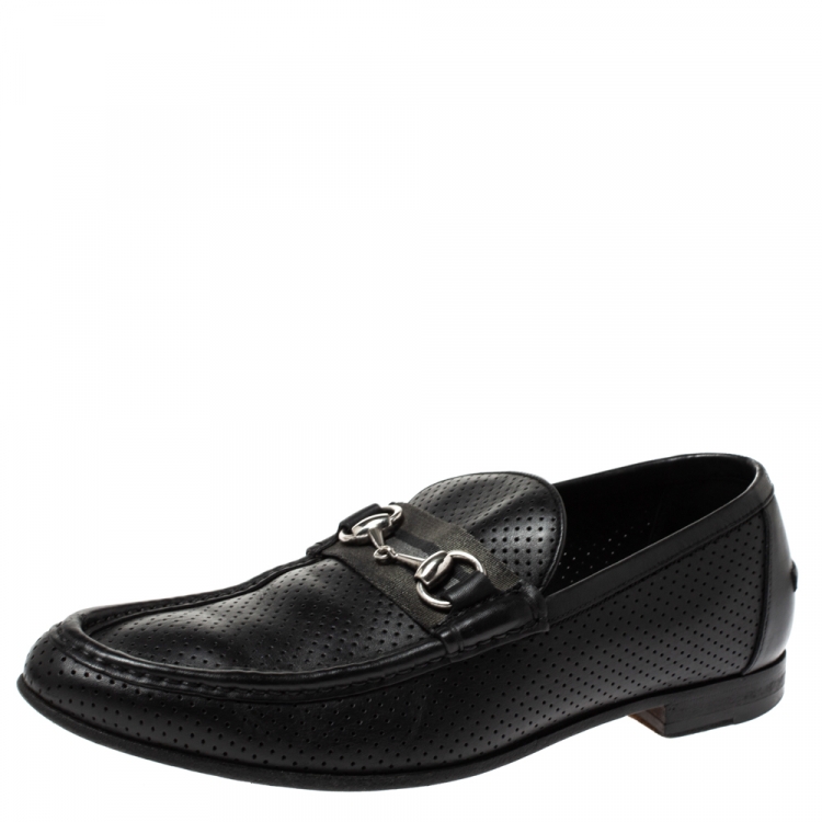 Gucci Black Perforated Leather Horsebit Slip On Loafers Size 45