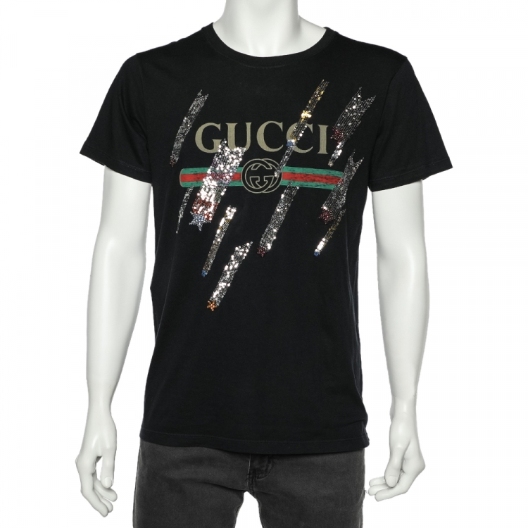 Pre Owned Gucci Black Shooting Stars Embellished Cotton T-Shirt S