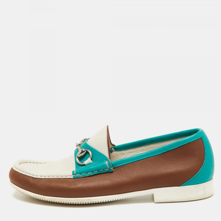 Gucci Tricolor Leather Horsebit Slip On Loafers Size 42