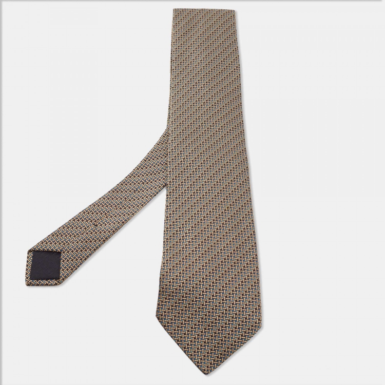 Pre Owned Hermes Brown Patterned Silk Jacquard Tie