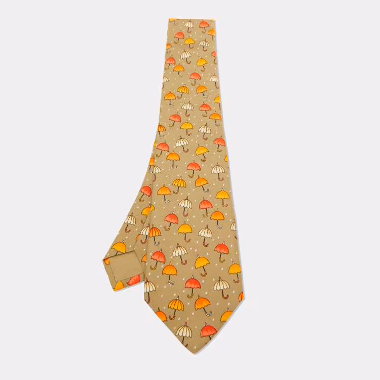 Hermes Multicolor Umbrella Print Silk Classic Tie