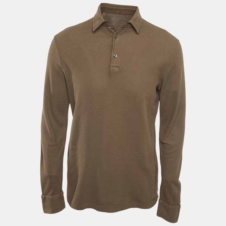 Loro Piana Brown Cotton Pique Polo Long Sleeve T-Shirt L