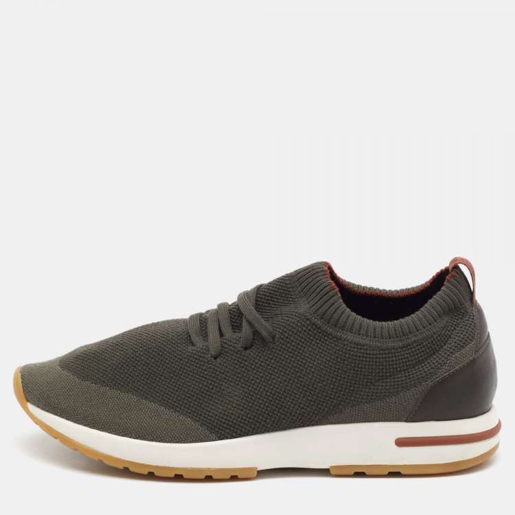 Loro Piana Olive Green Knit Fabric 360 LP Flexy Walk Low Top Sneakers Size 41