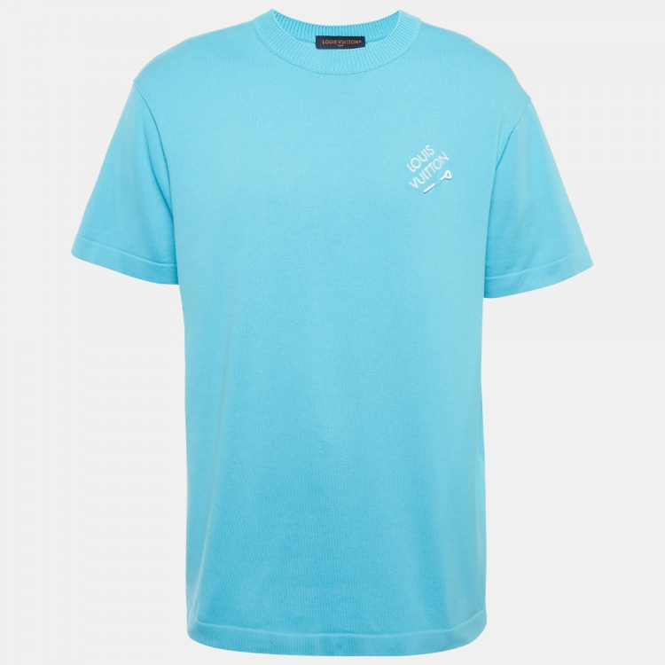Louis Vuitton Blue Pin Logo Embroidered Cotton T-Shirt M