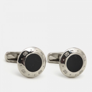 Gucci Silver Tone Black Inlay Round Cufflinks