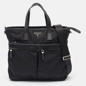 Prada Black Re-Nylon and Saffiano Leather Messenger Bag