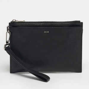 Dior Black Oblique Canvas and Leather Zip Wristlet Pouch