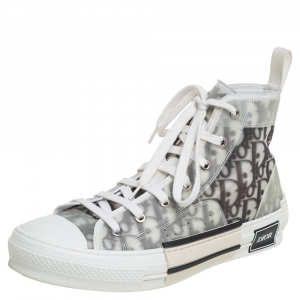Dior White/Grey Oblique Mesh B23 High Top Sneakers Size 40
