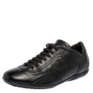 Versace Black Leather Logo Embossed Low Top Sneakers Size 40