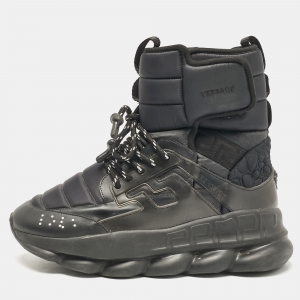 Versace Black Leather High Top Sneakers Size 42