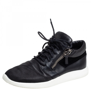 Giuseppe Zanotti Black Leather, Mesh Side Zip Sneakers Size 42