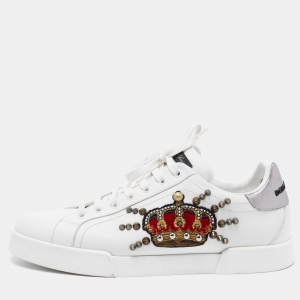 Dolce & Gabbana White Leather Portofino Sneakers Size 42