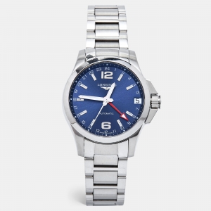 Longines Blue Stainless Steel Conquest GMT L3.687.4.99.6 Men's Wristwatch 41 mm