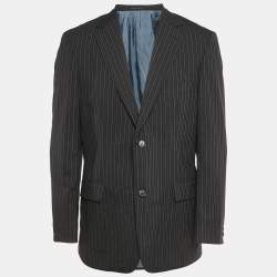Boss by Hugo Boss Charcoal Grey Striped Wool & Silk Bertolucci Long Fit Blazer XL
