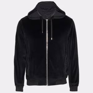 Versace Black Velvet Zip Up Medusa Hoodie XS