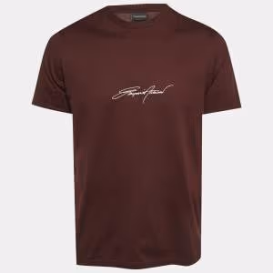 Emporio Armani Burgundy Logo Embroidered Jersey T-Shirt XL