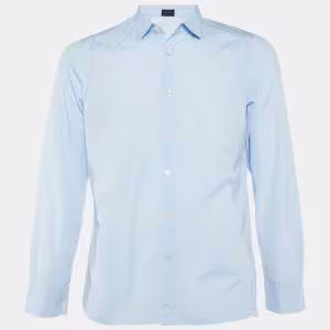 Lanvin Blue Cotton Full Sleeve Shirt M
