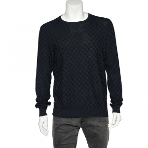 Louis Vuitton Black Knit Drop Needle Monogram Crewneck Sweatshirt XL