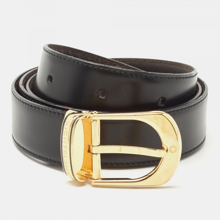 Montblanc Black/Brown Leather Buckle Belt 95CM