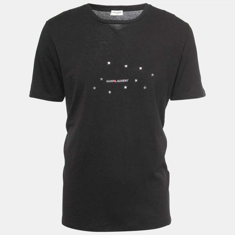 Saint Laurent Paris Black Stars Archive Logo Print Cotton Crew Neck T-Shirt M